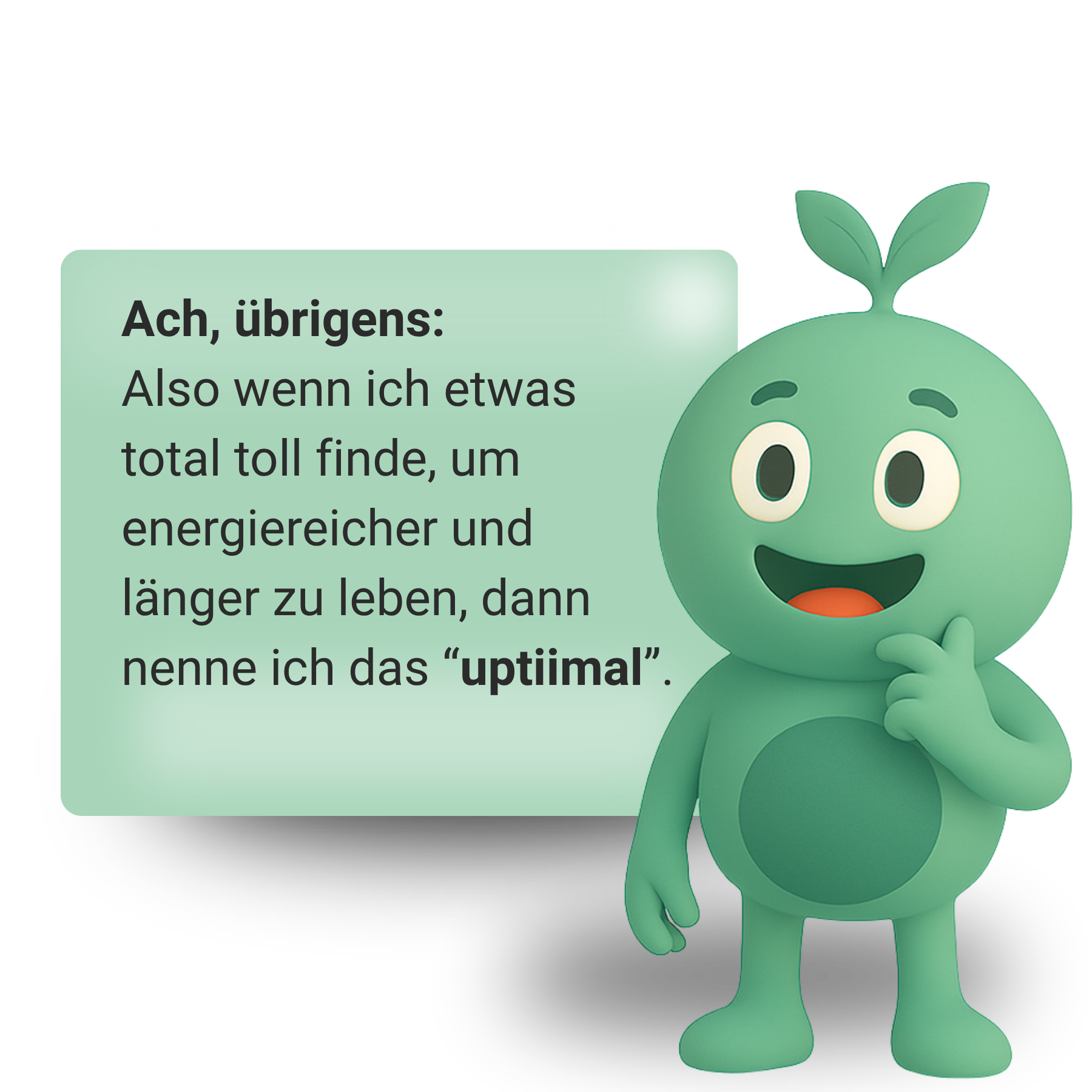 vielleicht siehst du auf den ersten Blick nur ein kleines grünes Wesen mit einem Pflänzchen auf dem Kopf – aber in Wahrheit bin ich ein echter Longevity-Nerd. 🌱